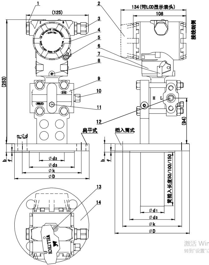 | L | 過程法蘭側(cè)面下部 | ||