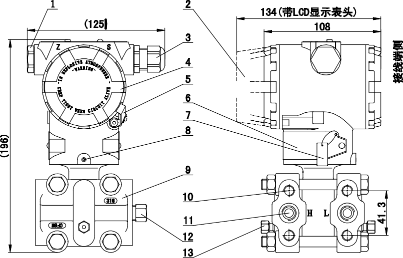 | H | 水平過(guò)程法蘭 | NPT1/4內(nèi)螺紋 |