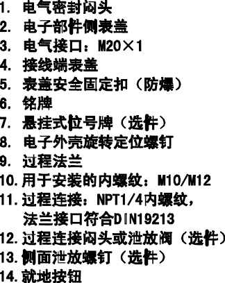| 1 | M20×1.5(配電纜密封頭) | 表面噴塑鋁合金 |