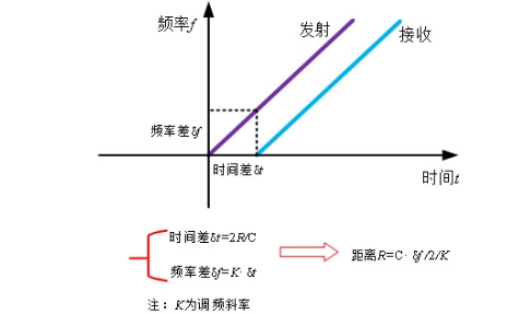 調(diào)頻連續(xù)波雷達(dá)液位計(jì)的工作原理是利用同步調(diào)頻脈沖技術(shù),向液體表面發(fā)射頻率受特定信號(hào)調(diào)制了的微波信號(hào),當(dāng)微波信號(hào)向下傳播到液體表面后被反射回接收器時(shí),通過(guò)得到反射波與發(fā)射波的頻率差,推算出雷達(dá)波通過(guò)的距離,得出液位高度。
