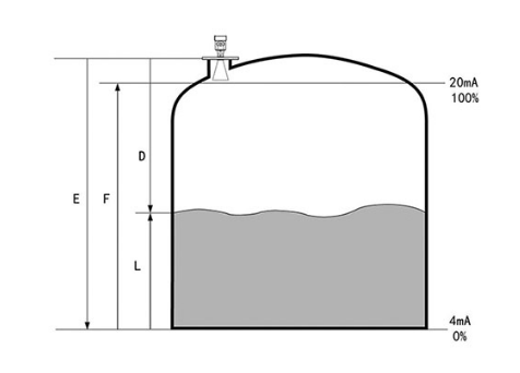 如圖1所示,可以得出液位高度(L)的計算公式:L=空標(E)-V0t/2(1)即:液位百分比(l)=(L÷F)×100%