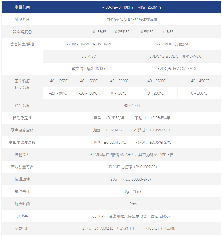 高溫壓力傳感器性能指標(biāo):